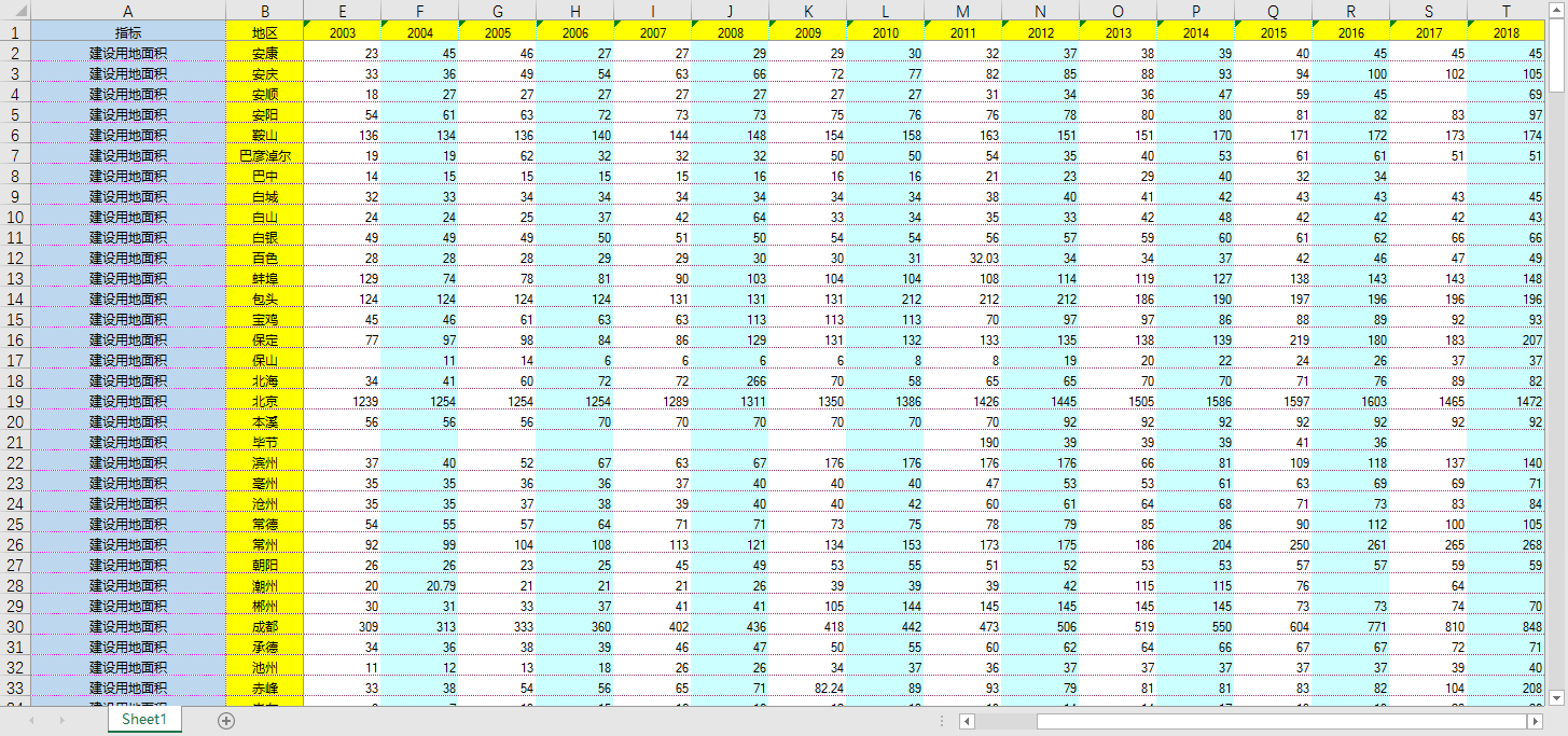 近300个地级市 2003-2018年 建设用地面积(居住用地)