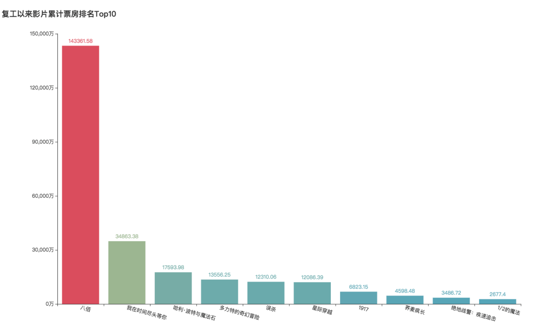 随着疫情的转好,在经历了178天的冰封后,电影院终于在7月20日复工了。那么影院复工后,哪些影片最受欢迎?今天我们就用数据说话。