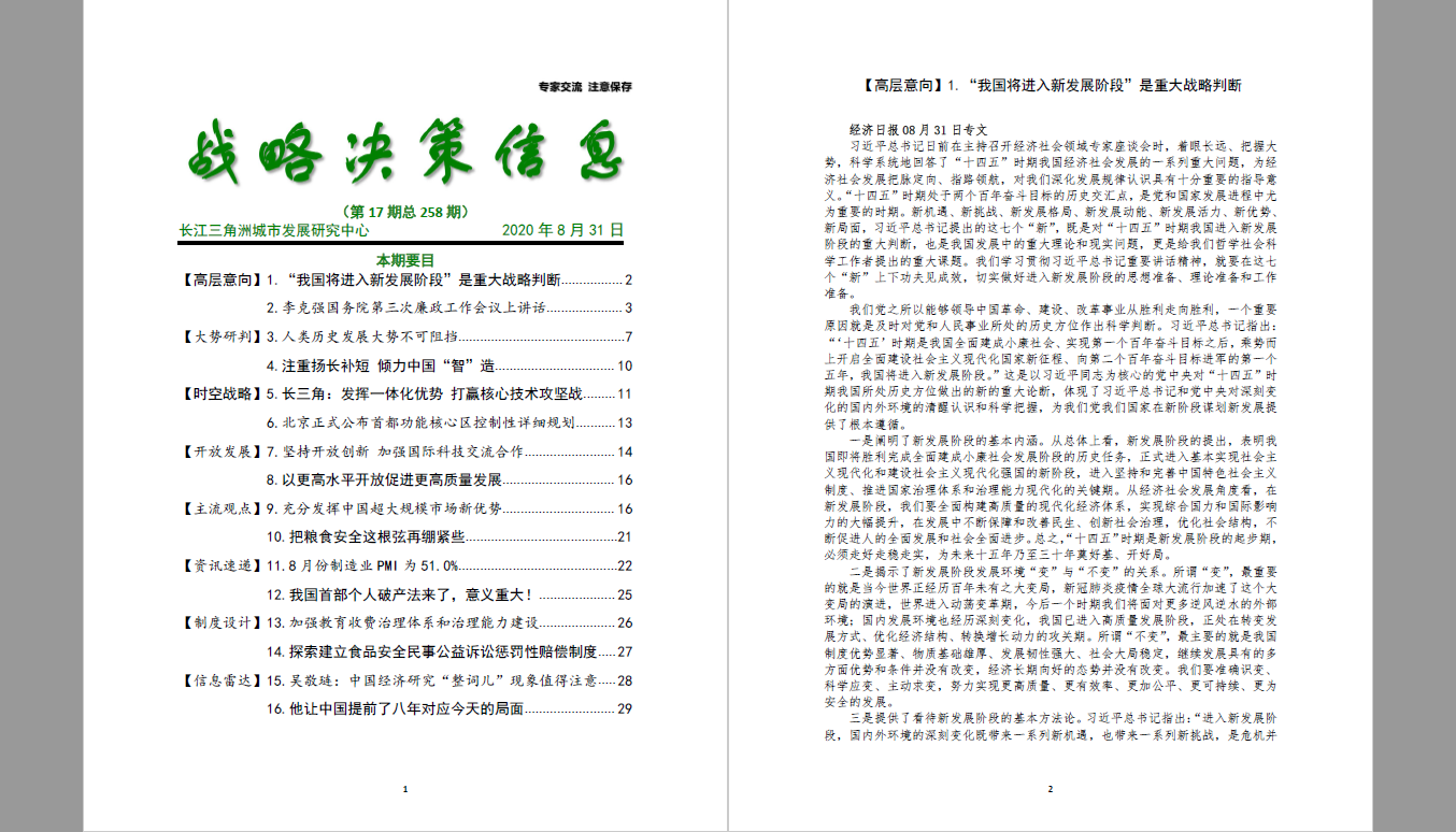 【高层意向】1.“我国将进入新发展阶段”是重大战略判断................. 2