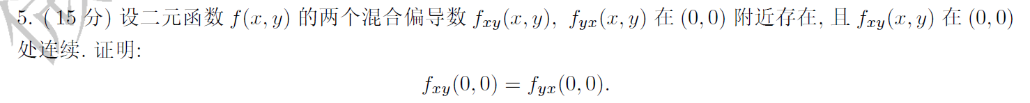 又由已知, $\displaystyle f_{xy}(x,y)$在$(0,0)$连续,故