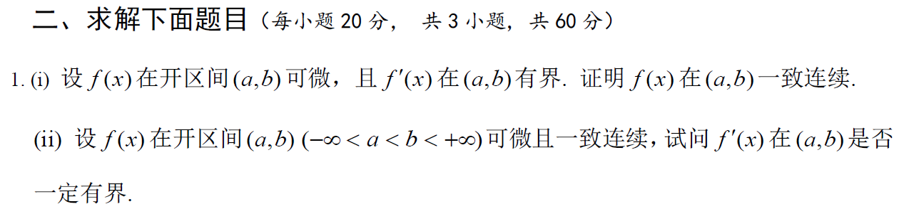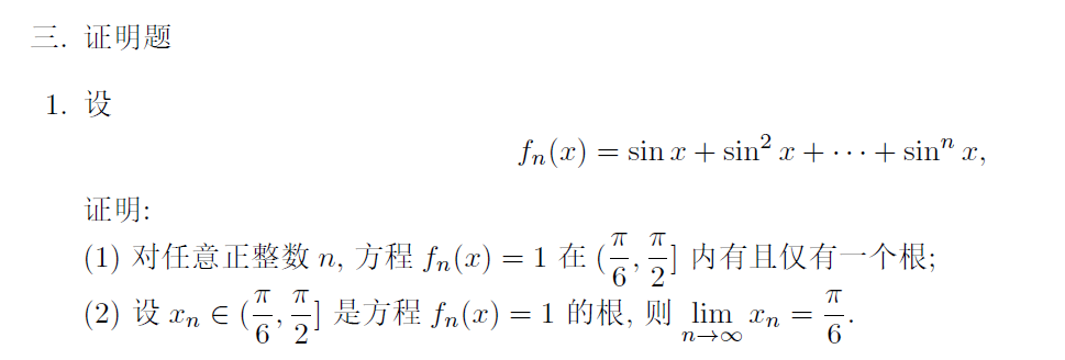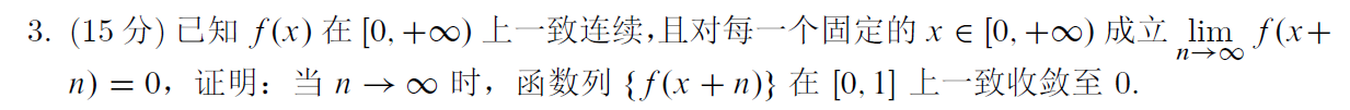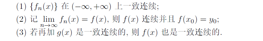 (2)、 只要证明$f(x)$ 在$[a,b]\subset (-\infty ,+\infty )$ 内连续即可。由(1)可知$f_n(x)$在$[a,b]$上一致收敛于$f(x)$。故只要证明$f_n(x)\in C[a,b]$即可。事实上$\forall x_0\in [a,b]\subset (-\infty ,+\infty )$,有