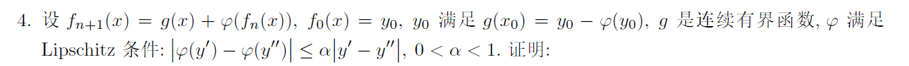 $\begin{align*}|f_{n+p}(x)-f_{n}(x)|&=|\phi (f_{n+p-1}(x))-\phi(f_{n-1}(x))|\\\\&\leq \alpha |f_{n+p-1}(x)-f_{n-1}(x)|\\\\&\leq \cdots \\\\&\leq \alpha ^n|f_p(x)-f_0(x)|.\end{align*}$