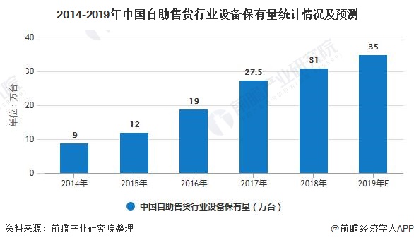 2014-2018年,我国自助售货机保有量不断增长,2019年,我国自助售货行业继续保持较快发展,自助售货设备生产规模、设备保有量继续保持增长。