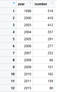 theme(plot.title = element_text(hjust = 0.5,size=17))+geom_text_repel(aes(year, number, label=number))+