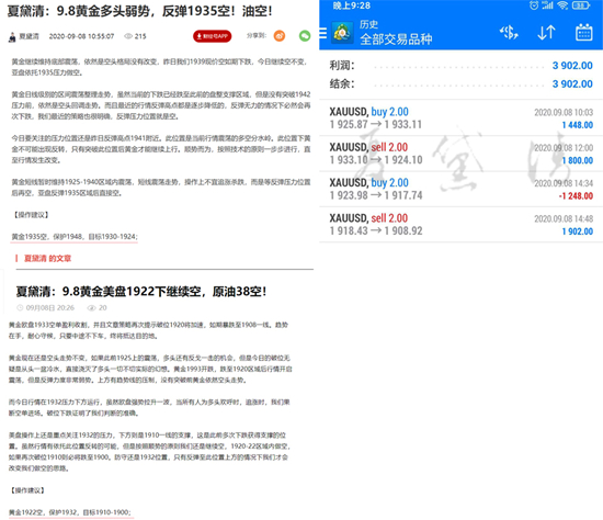 周二黄金亚欧盘是呈区间震荡整理走势,亚盘黛清文章给出1935的空单策略。看一波回调,所以当黄金跌倒1925附近的时候,黛清就通知实盘客户进场多单,在1933位置手动止盈离场,随后1933的空单也相继给出,在1924位置手动止盈离场,操作上是想再看一波回调的,但是多头动能已耗尽!1923的多单手动止损离场。回调一小波后黛清给出1918的空单,在1908位置出局,共获利十个点。大利润是在对的方向里等出来的,不纠结,不焦急,淡定持有方有始终!