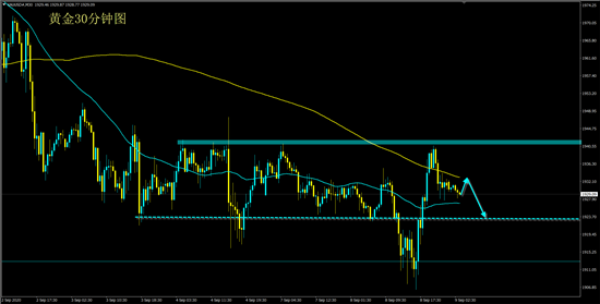 强不再强必转弱。1933的压力,多空抢夺的转折点。此位置上黄金将开启多头反弹,可能涨至1990区域。此位置下,黄金将破位1900,跌至1860。从今天亚盘的走势来看,偏弱的空头形态,黄金承压1933压力,均线阻碍多头进一步上行,下跌是必然。欧盘继续进场空。
