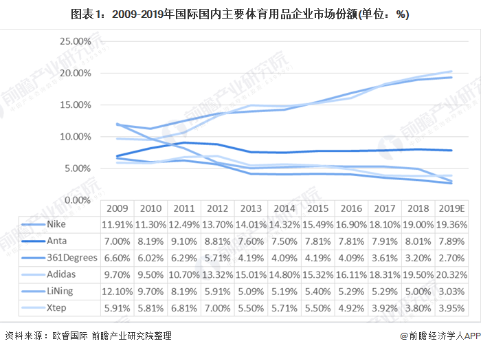 1、中国体育用品市场由外资主导 销售额稳步增长