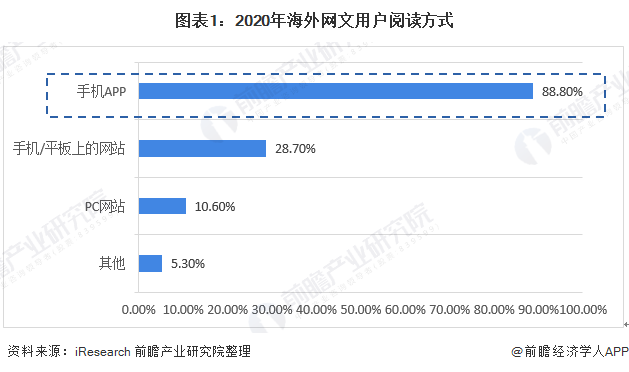 海外网文用户主要通过手机APP阅读网文,88.8%用户主要通过手机APP阅读
