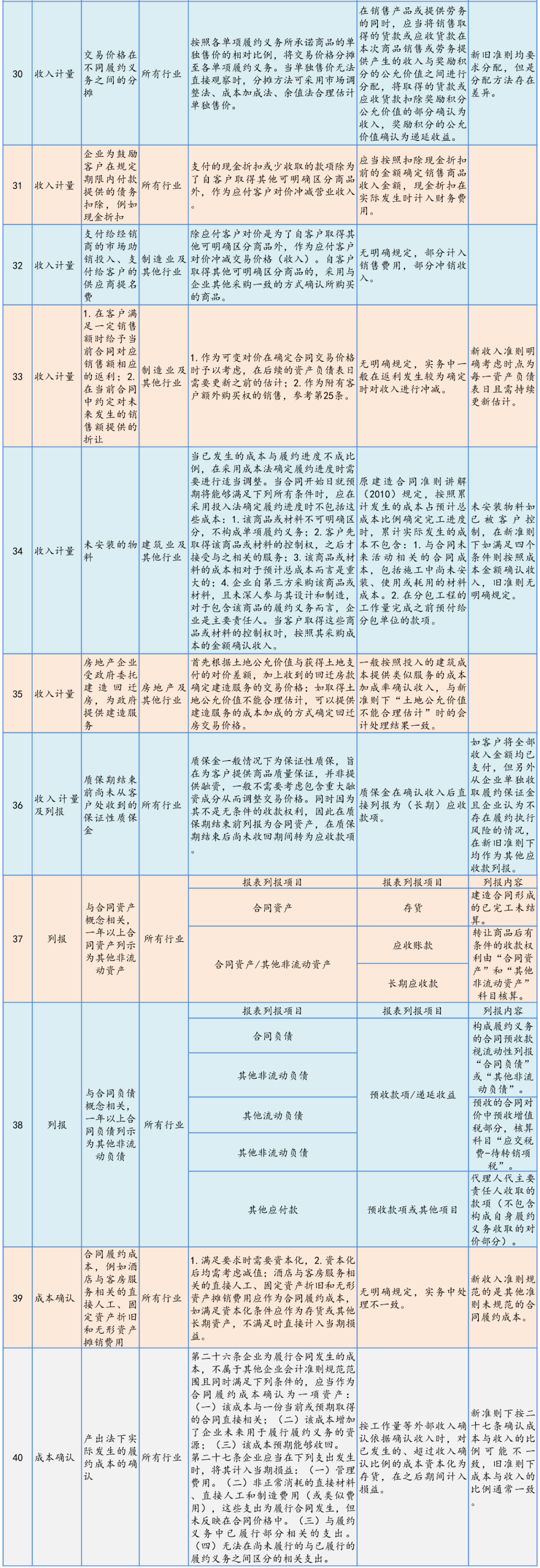 大信会计师事务所对新旧收入准则下44项会计业务处理进行对比梳理,供执业人员参考如下。