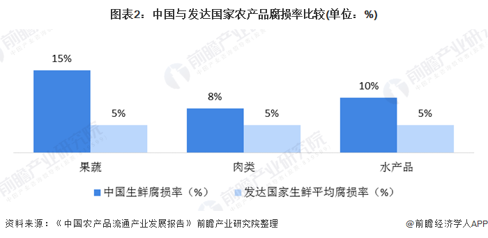 数据显示,目前欧美国家已经将生鲜产品的损耗率控制在5%的稳定水平,其他食品的损耗率也已经降到了1%以下。而我国的生鲜平均损耗率在10%以上,是欧美国家的2-3倍,大大提高了生鲜市场的成本。