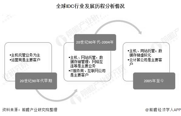 1、全球IDC行业发展历程分析:发展处于第三阶段