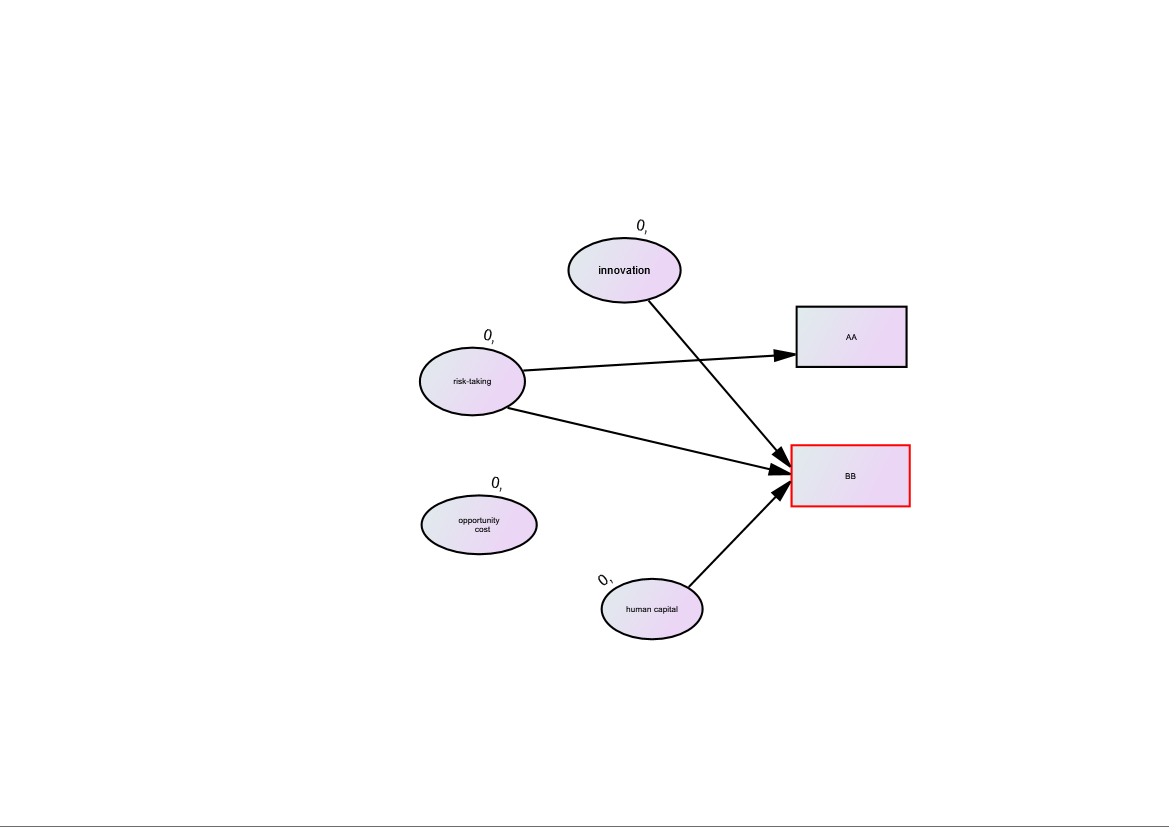 五个隐形变量,下面四五个维度。奇怪的就是最后一个隐形一挂就死。如果直接拉线到下面的显性变量,就是可以成功的。