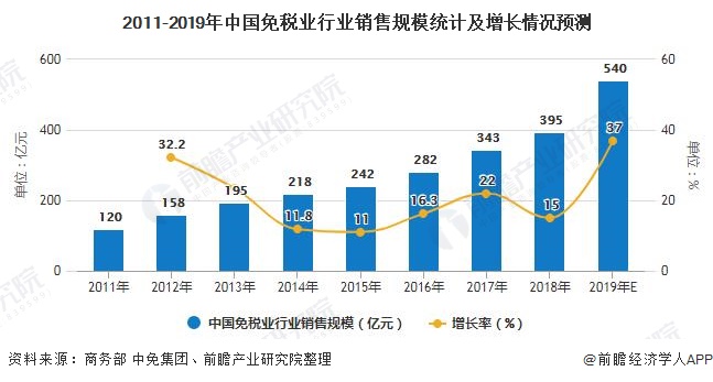 2011-2018年,除2015年MERS疫情影响下出现短暂波动外,全球免税总体维持良好增长势头。2018年全球免税市场已经达亿美元,同比增长12.8%。前瞻初步估算2019年全球免税业仍将保持将近8%的增速,市场规模将超过834亿美元。
