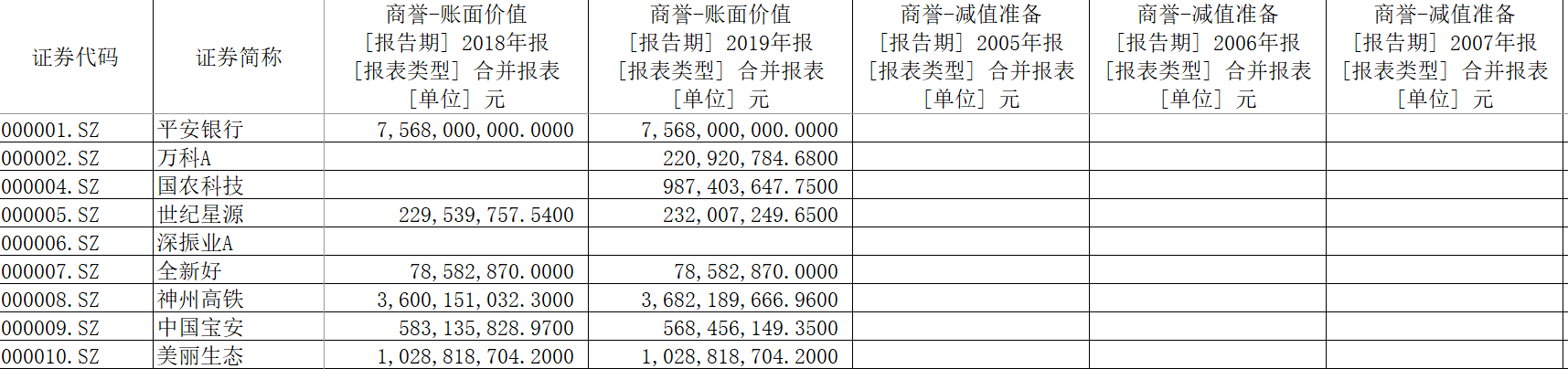 与2018年以前的不同,wind的商誉数据好像只有【账面价值】和【减值准备】两个指标