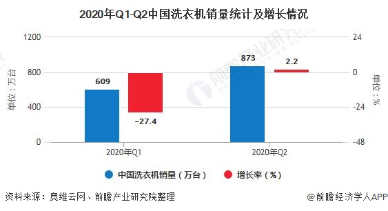 2020年初新冠疫情在我国爆发,洗衣机销售受到冲击,根据奥维云网公布的数据显示,2020年Q1我国洗衣机销量为609万台,同比下降27.4%,实现销售额107亿元,同比下降34.8%,随着疫情的结束,线下门店销售逐渐恢复,2020年Q2,我国洗衣机销量为873万台,同比增长2.2%,销量有所回升,然而由于行业整体价格下降,2020年Q2我国洗衣机行业实现销售额167亿元,同比下降2.4%,降幅有所缩小。