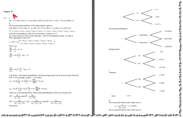“中级金融理论(第2版)-J.P.Danthine &J.B .Donaldson”课后练习题,特别经对中级金融理论学习中的重点难点习题,如:风险偏好的度量 卢卡斯树 CAPM CCAPM模型 Arrow Debreu定价 鞅测度等,进行了详细分析解答。