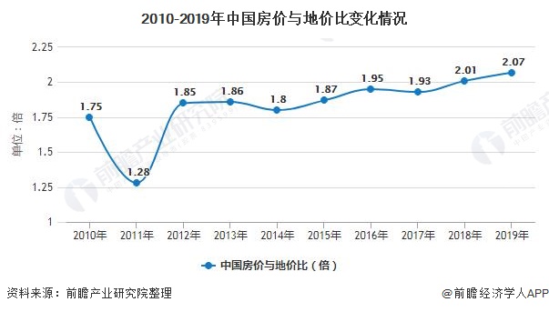 房地产投资热度不减,是否说明行业仍具有较大的盈利空间?一方面,以房价与地价比来衡量,房价与地价的比例越高,说明房地产的获利空间就越大。测算得出,2010-2019年全国房价与地价比整体呈波动上升的趋势,2019年约为2.07倍,为2010-2019年期间的最大值,说明行业仍具有较大的盈利空间。
