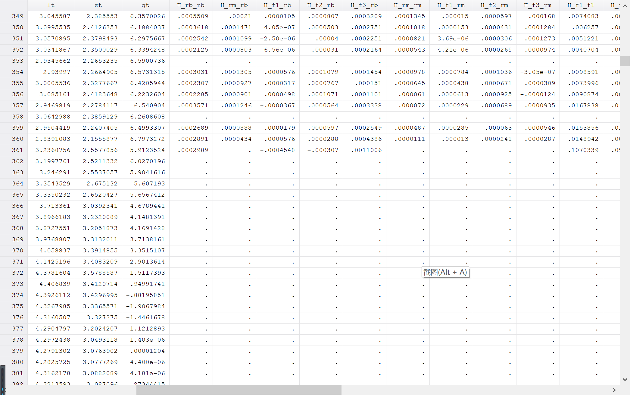 求条件方差-协方差矩阵,数据量总共2677个,但只得到360条结果,如图所示:换了样本区间之后还是无法计算全部结果,求问大神们为什么会出现这种情况,应该怎么处理呀,急求解决!!