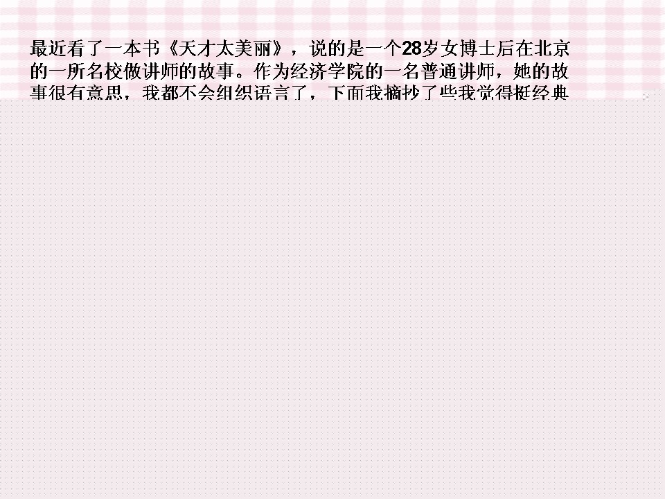 昨天看完了《天才太美丽》这本书,整本书融合了经济学,爱情哲学,读后轻松自然,收获满满。