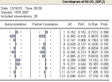 请教一下,自相关和偏相关都是一阶不显著,然后二阶显著,后面都不显著,但是没有明显减弱趋势,请问这是ARMA模型吗,如果是,P=2,Q=2对吗