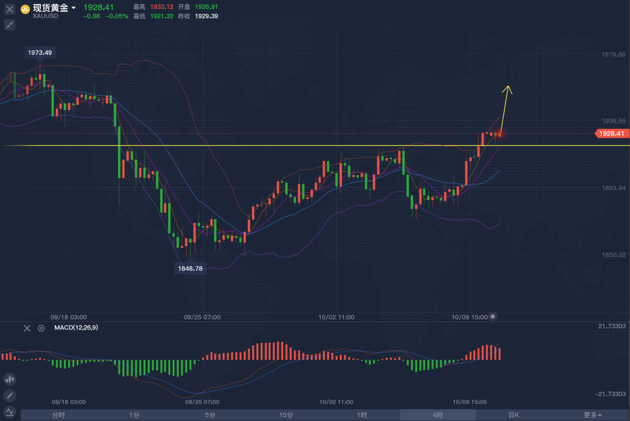 黄金:早盘直接在1928的位置现价多,止损在1920,目标1940-1945,而黄金TD在409的位置直接多,损在406即可,目标413-415,破位继续持有。可考虑突破位后此单博长线。