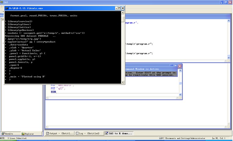 最近我看了一篇SAS与R做数据交流的文章,对程序做了一些调整,实现了由SAS整理数据集,然后调用R统计包进行作图,之后再传入SAS,并通过ODS以网页格式呈现,现放此供大家参考使用,,因为前阵子看到了很多讨论SAS和R这两个统计包未来发展趋势的帖子,遂了解了一下,程序及简单注释贴于以下: