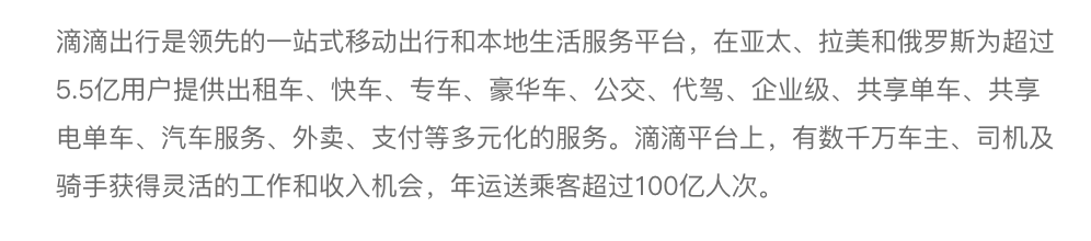 反观竞争对手滴滴,拥有数千万车主、司机及骑手,为海内外超过5.5亿用户提供服务,年运送乘客超过100亿人次。