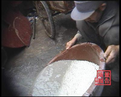 专家:明矾是不能加的,为什么呢?就是明矾当中,我们前几期节目已经谈到过,很明确,因明矾当中含有铝,这种物质对小孩影响智力,除了这以外,这整个制作的方式,这个水,就是(水中)微生物、细菌总数、大肠杆菌一定超标。所以往往会造成我们的消费者腹泻。
