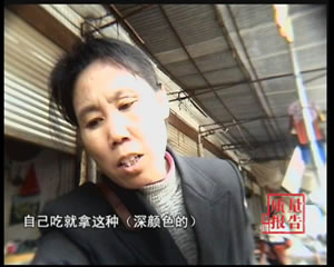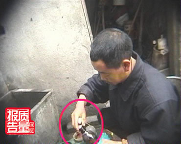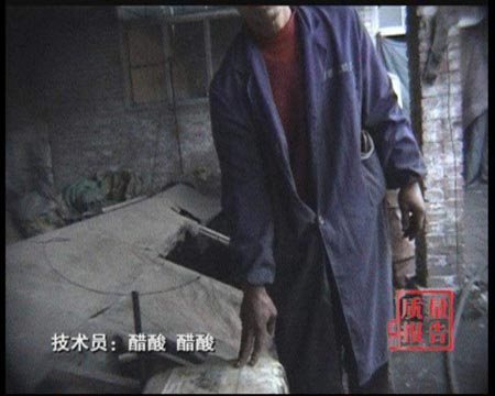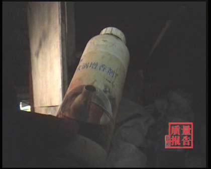 技术员:陈醋的颜色应该是深色的,这个原醋颜色太淡。记者:加了色素颜色就深了,像陈醋似的