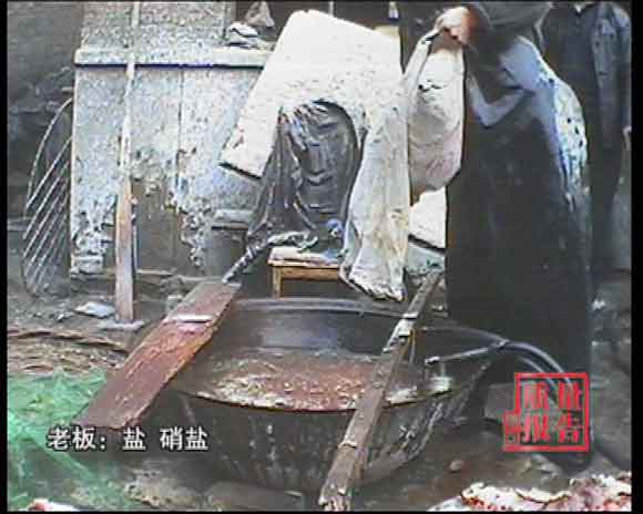 工人:这是食品防腐剂亚硝酸钠,这东西吃了要不得。