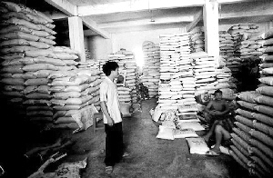 这是位于福州市南郊红星农场里的一个水果储存仓库,仓库里堆满了成箱的橙子,空气里弥漫着一股浓重的霉味。