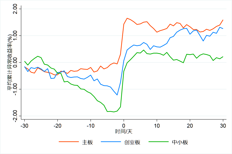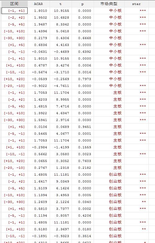 不同窗口CAR显著性检验 - 分不同市场类型![]()